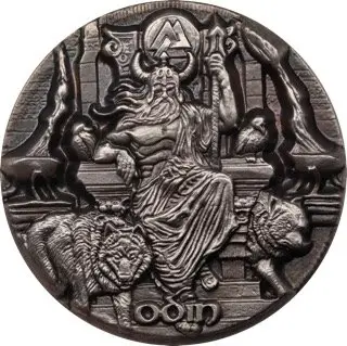 • Reverse: Odin on his throne with wolves Freki & Geri and ravens Huginn & Muninn
