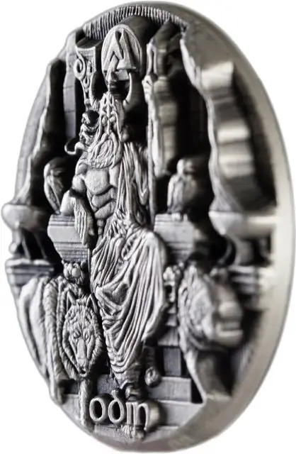 Step into the world of Norse mythology with the 2016 Odin Ruler of the Aesir Legends of Asgard 3oz Max Relief Silver Proof Coin, the first release in the celebrated Legends of Asgard series. Struck in 3 oz of .999 fine silver with an antique finish, this coin features a Max Relief design with 5mm depth, giving Odin and his majestic companions a lifelike, three-dimensional presence.