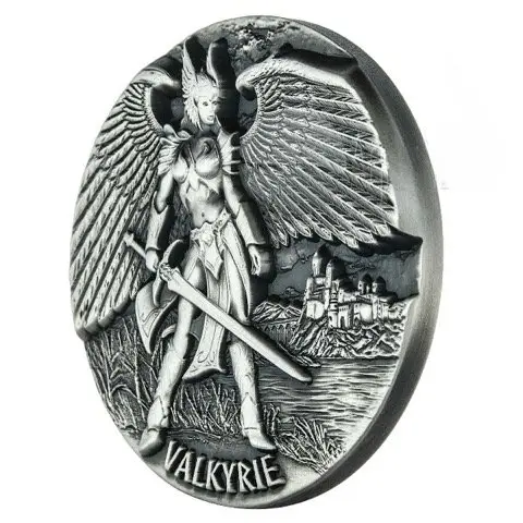 In Norse mythology, the Valkyrie is one of a host of female figures who decide the fate of warriors in battle, selecting who may die and who may live. The reverse of the coin beautifully captures her strength and grace, while the obverse carries the Tokelau legal tender design.