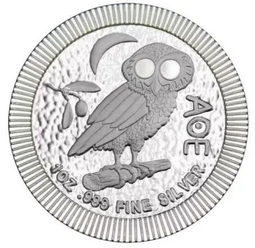 Inspired by the ancient Greek Athenian tetradrachm, the reverse features the iconic owl of Athena standing beside an olive branch and crescent moon, accompanied by the traditional “AOE” inscription. This enduring design symbolises wisdom, strength, and strategic power, connecting modern bullion to one of history’s most recognisable coin motifs.