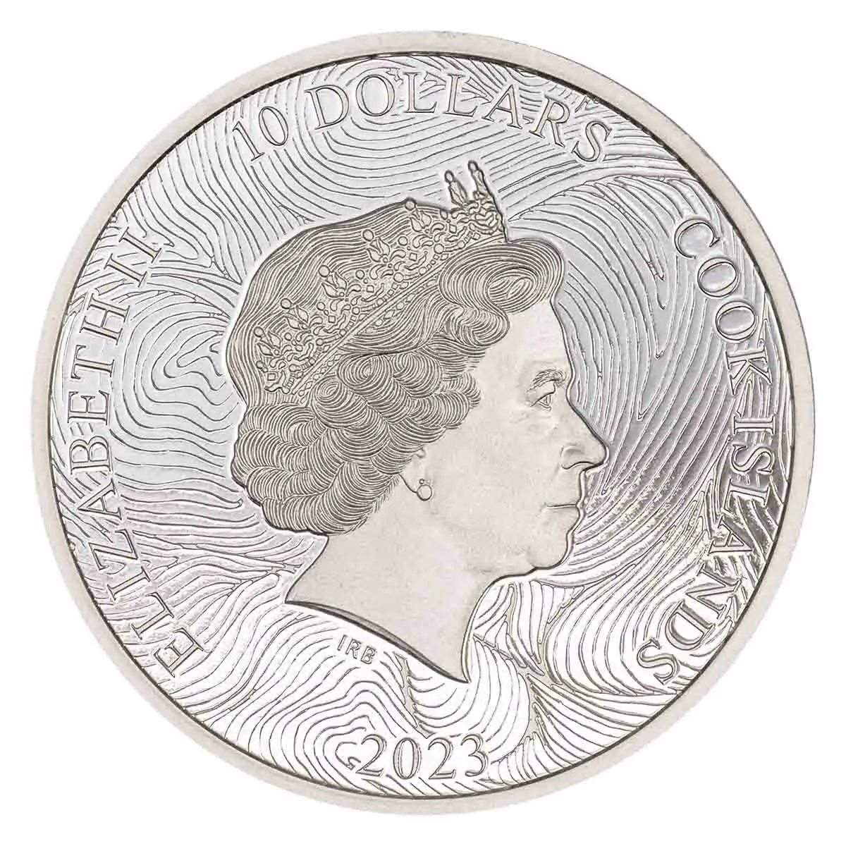 Experience the beauty and symbolism of nature with the 2023 Cook Islands $10 Silverland The Wave 2oz Silver Proof Coin, an exceptional collectible issued by Coin Invest Trust (CIT). Struck from 2 oz of fine silver with a brilliant proof finish, the coin features a stunning ultra-high relief design that captures the complex and powerful form of an ocean wave.