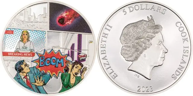 Experience the dramatic power of the Australian outback with the 2023 Meteorite Impacts $5 Tenham 1oz Silver Proof Coin, the latest release in CIT’s acclaimed Meteorite Impacts series. This coin commemorates the spectacular meteorite event over Tenham Station, where witnesses saw a bright fireball streak across the sky followed by a thunderous boom.