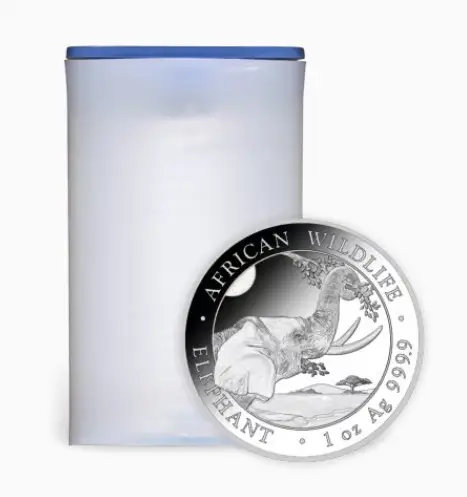 The 2023 Somalia Elephant Silver Bullion Coin in Tube of 20 offers investors and stackers an efficient way to acquire 20oz of .999 fine silver in one of the world’s most recognisable bullion series. Each coin contains 1 troy ounce of fine silver, making this tube an ideal option for long-term stacking, secure storage, and ease of handling.