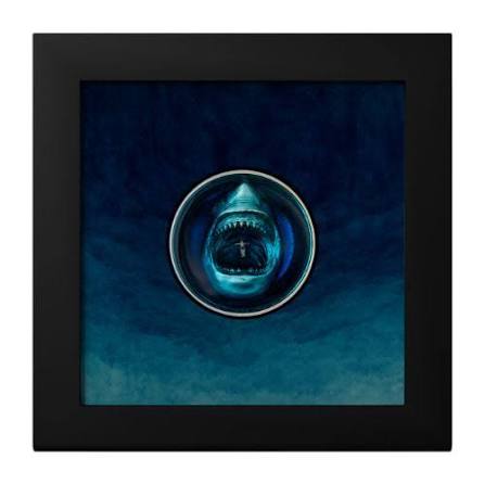 The reverse features an unsuspecting swimmer floating atop dark waters, unaware of the immense depth and unseen mysteries lurking below. The inverted relief gives the illusion of looking into a real underwater void, amplifying the sense of dread and fascination. This innovative design places the viewer inside the fear itself — an effect that must be seen in person to be fully appreciated.