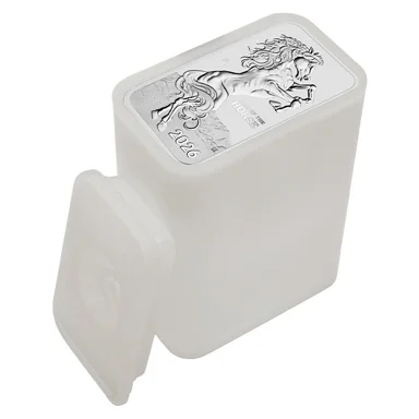 The Perth Mint 2026 1oz Silver Lunar Horse Rectangular Coin is offered here in a full tube of 20 coins, delivering a total of 20 troy ounces of 99.99% pure silver. Part of the highly regarded Lunar Series, this release celebrates the Year of the Horse, a symbol of strength, independence, and charisma in the Chinese lunar calendar.