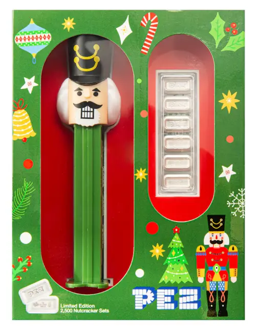 This special release features six 5g pure silver wafers, carefully crafted as replicas of the iconic PEZ® candy refills, paired with an authentic Nutcracker-themed PEZ® dispenser. Combining holiday tradition with silver bullion appeal, this set is ideal for collectors, gift buyers, and PEZ® enthusiasts alike.