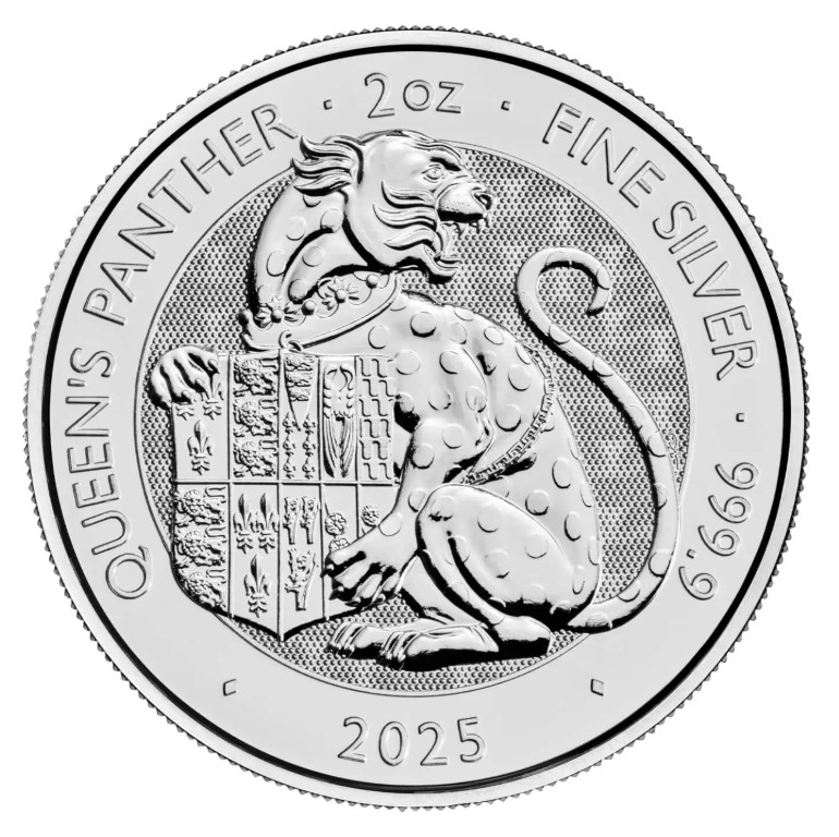 The Royal Mint Tudor Beasts 2025 Queen’s Panther 2oz Silver Bullion Coin continues The Royal Mint’s acclaimed series inspired by the ten majestic stone beasts that line the Moat Bridge at Hampton Court Palace. Representing royal lineage and strength, these heraldic creatures celebrate the union of Henry VIII and Jane Seymour. The sixth design in the series honours the Queen’s Panther, a symbol of courage, grace, and royal authority.